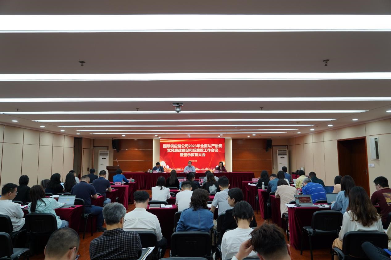 4月19日下午,國(guó)際供應(yīng)鏈公司召開2023年公司全面從嚴(yán)治黨、黨風(fēng)廉政建設(shè)和反腐敗工作會(huì)議暨警示教育大會(huì)。會(huì)議深入學(xué)習(xí)貫徹習(xí)近平新時(shí)代中國(guó)特色社會(huì)主義思想和黨的二十大精神,全面落實(shí)二十屆中央紀(jì)委二次全會(huì)和省紀(jì)委十五屆二次全會(huì)部署,總結(jié)2022年公司全面從嚴(yán)治黨、黨風(fēng)廉政建設(shè)和反腐敗工作,部署2023年任務(wù),進(jìn)行警示教育。公司黨委書記、董事長(zhǎng)周雋同志在會(huì)上作了講話,公司黨委副書記、紀(jì)委書記陳友海同志傳達(dá)了集團(tuán)全面從嚴(yán)治黨、黨風(fēng)廉政建設(shè)和反腐敗工作會(huì)議及領(lǐng)導(dǎo)干部警示教育大會(huì)精神,會(huì)議由公司黨委副書記、董事、總經(jīng)理何巧爾主持。公司領(lǐng)導(dǎo)班子成員、本級(jí)全體黨員職工、國(guó)經(jīng)公司班子成員及部室負(fù)責(zé)人參加會(huì)議。